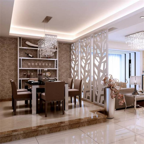 室内隔墙造型设计和空间大小有直接关系,如果房间空间比较小,那不要做太大的隔断,可以根据实际面积进行设计,这样不仅可以使空间看上去更加整洁,而且不会使居室显得拥挤,所以设计时要注意尺寸问题。