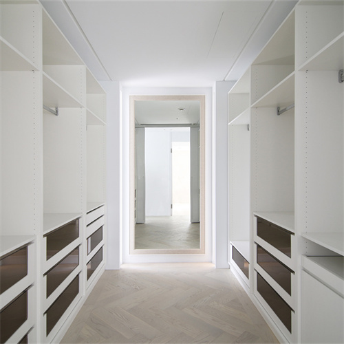 衣帽间:各个功能分区明确,上边收纳不常用的换季衣物,中间悬挂当季容易褶皱,不能折叠的衣物,下半部分是抽屉收纳柜,直接拉出来就能拿到,不用一直蹲着来回翻找。
