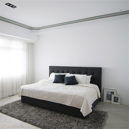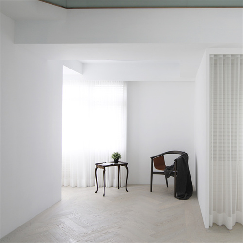 卧室:整体以白色为主,做无主灯设计,即使灯的数量少也能达到照明需求。卧室通往衣帽间的过道,放上一把椅子和一张茶几,闲来无事坐在下来喝杯茶,晒晒太阳。