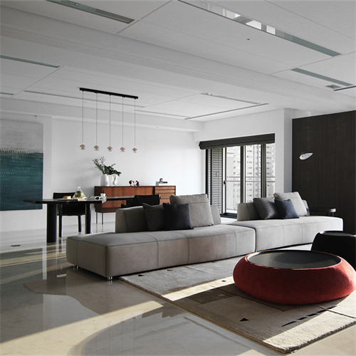 客厅:整体颜色搭配以黑白灰为主,加上落地窗,采光面积增加,室内更加明亮。主要突出简约,线条设计简单,没有过多的装饰,一切都恰到好处。