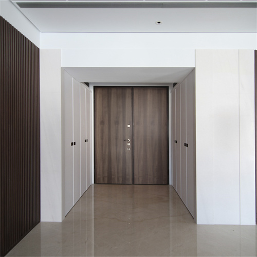 玄关:入户两边设计收纳柜,房梁完美隐藏在柜体之中,不仅美观,而且收纳空间足。看上去格局方正,简洁明朗。