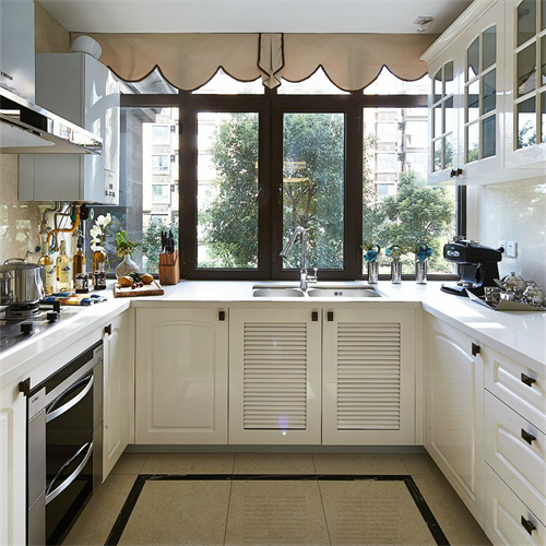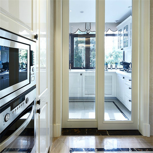 厨房:玻璃门把炒菜区和蒸烤区分开,可以多人同时操作,窗户采光面积大,光线效果好,空间布局合理,利用率高。
