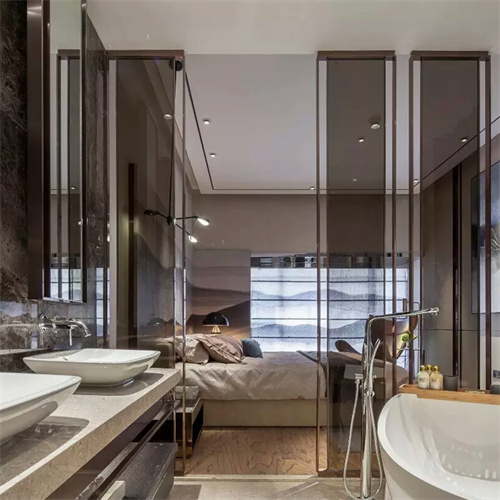 近几年流行深色装修,随时可见的深色墙面,黑、灰色瓷砖、定制柜和家具等,黑白灰搭配,的确不容易翻车,也很显高级。建议楼层比较低,或采光不足,还是慎用大面积深色,因为大面积暗色装修会影响采光,甚至白天也要开灯。