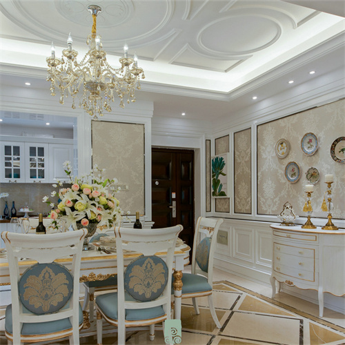 餐厅:长方形餐桌更加百搭,可以搭配多种风格,温暖且浪漫的米白色,诠释着法式的浪漫主义。