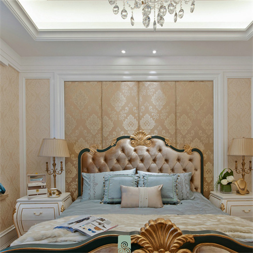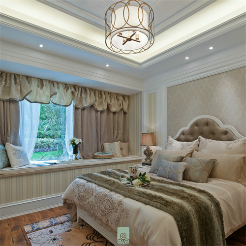 卧室:丝绒质地的窗帘、真丝面料的床上四件套、皮质的床头软包以及浓墨重彩的装饰极具代表性,看上去十分的高贵典雅。
