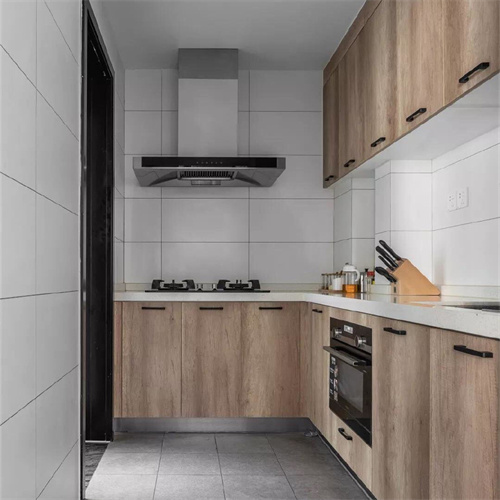 厨房:U型布局空间利用率高,扩大了厨房的收纳空间,有利于保持厨房的干净整洁,分区明确,方便下厨,方便厨房电器的合理布局。