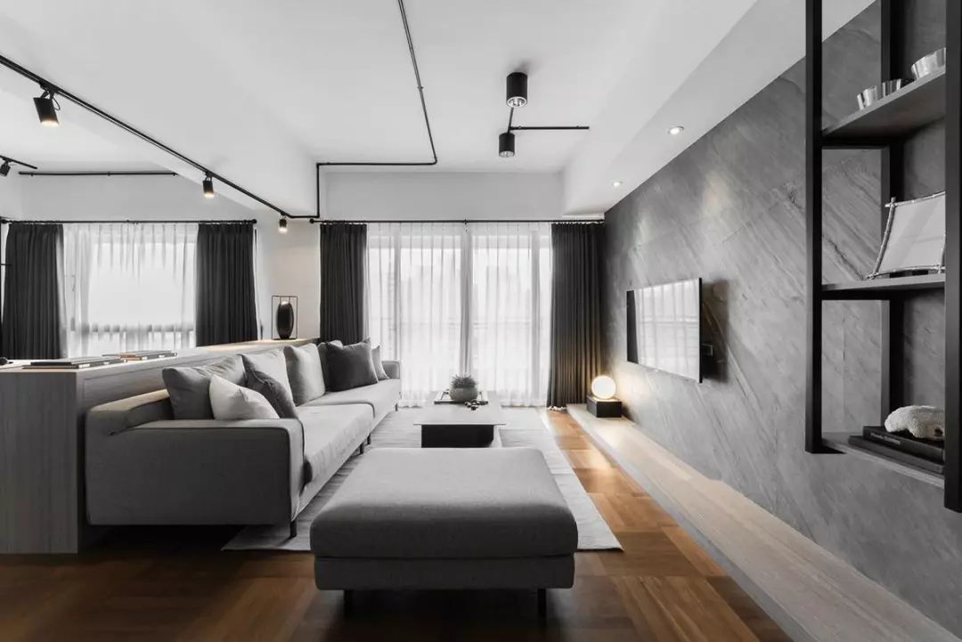无彩色调:由黑、灰、白色组成的无彩系,是一种十分高级和高度吸引人的色调。采用黑、灰、白无彩系色调,有利于突出周围环境的表现力。在室内设计中,粉白色、米色、灰白色以及每种高明度色相,均可认为是无彩色,完全由无彩色建立的色彩系统,非常平静。